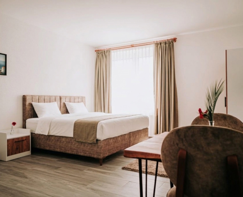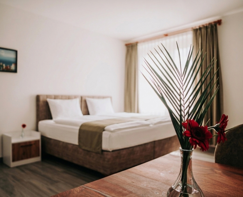 Dieses Doppelzimmer verfügt über ein eigenes Bad mit einer Dusche, einem Haartrockner, Hausschuhen und kostenlosen Pflegeprodukten. In der gut ausgestatteten Küchenzeile erwarten Sie ein Kochfeld, ein Kühlschrank, eine Mikrowelle und ein Wasserkocher. Das geräumige, schallisolierte Doppelzimmer mit Stadtblick bietet einen Flachbild-Sat-TV sowie einen Sitz- und einen Essbereich. In dieser Wohneinheit befindet sich 1 Bett.